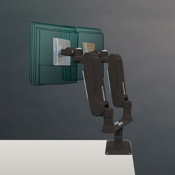 6kg〜10kgまでのディスプレイ2台をG1AXVアームによって自由に可動させて利用できる並行設置型ダブルアームです。