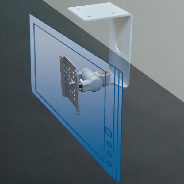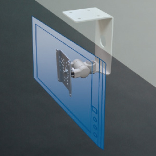 天井面からディスプレイ取付中央部までの寸法176mm位置で固定する天吊り設置用金具です。上下角・スイベル機能に加えて画面回転機能も整備しています。またディスプレイ重量に合わせて4kg・5.5kg・8kg・10kgの耐荷量を選択することが出来ます。
